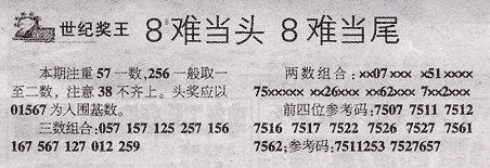 【世纪奖王】第985期预测信息<特区报>