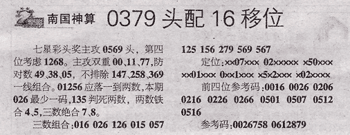 【南国神算】第985期预测信息<特区报>