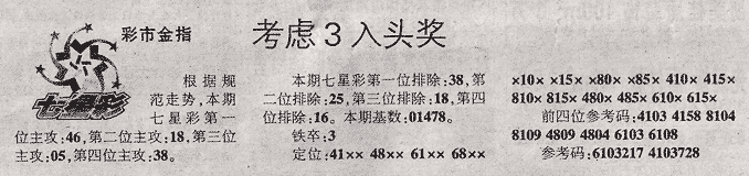 【冷彩市金指】第987期预测信息<特区报>