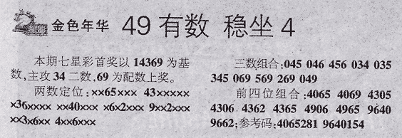 【金色年华】第987期预测信息<特区报>
