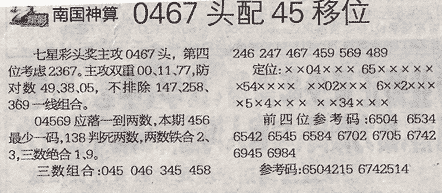【南国神算】第991期预测信息<特区报>