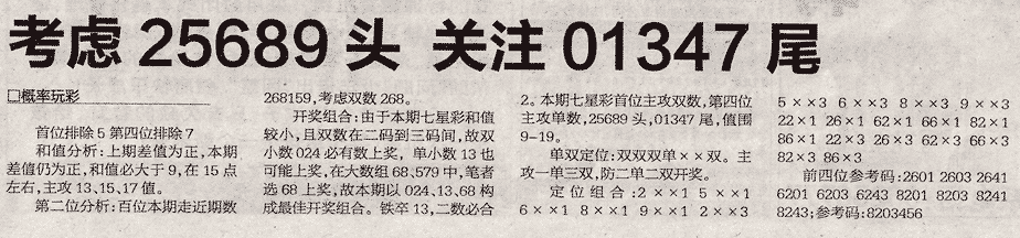 【概率玩彩】第991期预测信息<特区报>