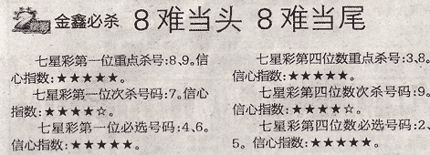 【金鑫必杀】第991期预测信息<特区报>