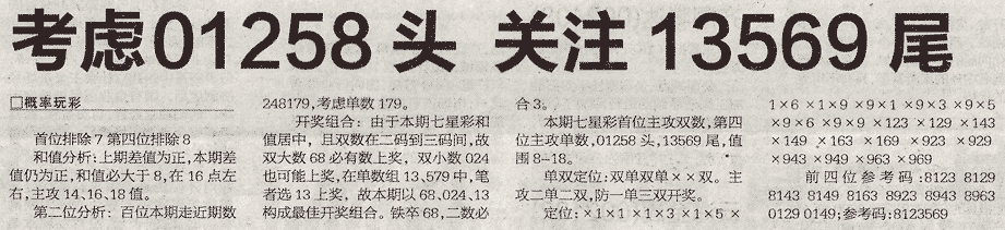 【概率玩彩】第993期预测信息<特区报>