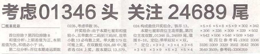 【概率玩彩】第996期预测信息<特区报>