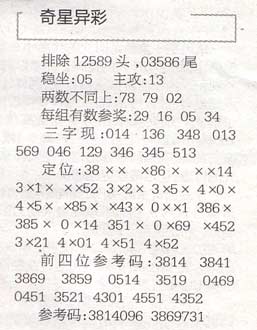【奇星异彩】第996期预测信息<特区报>