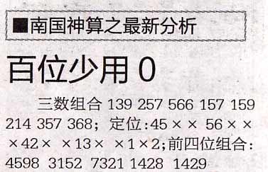 【南国神算】第998期预测信息<特区报>