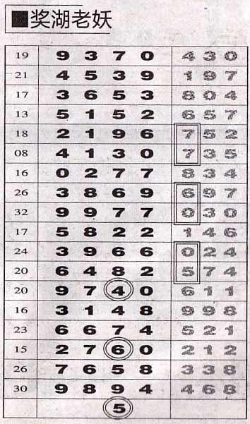【奖湖老妖】第998期预测信息<特区报>