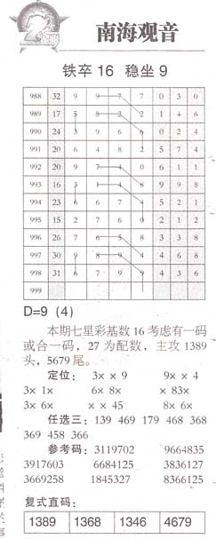 【南海观音】第999期预测信息<特区报>