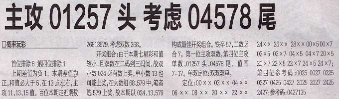 【概率玩彩】第1015期预测信息<特区报>