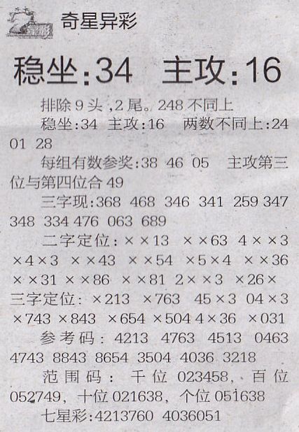 【奇星异彩】第1016期预测信息<特区报>