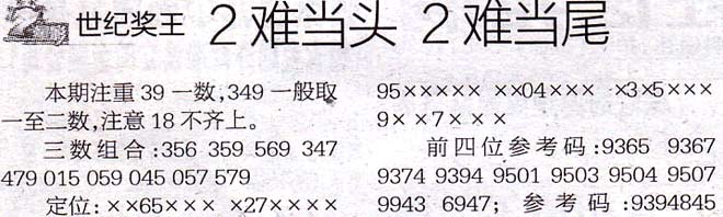 【世纪奖王】第1017期预测信息<特区报>