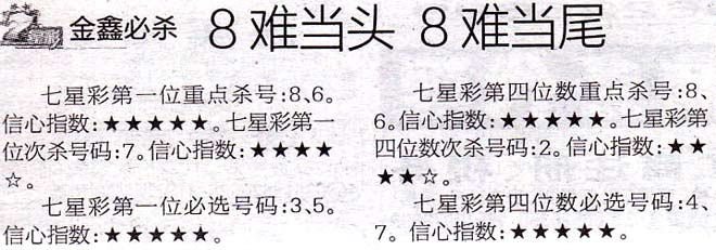 【金鑫必杀】第1017期预测信息<特区报>