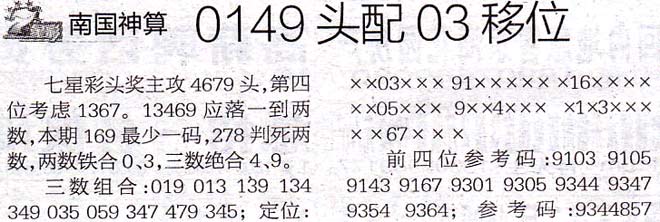 【南国神算】第1017期预测信息<特区报>