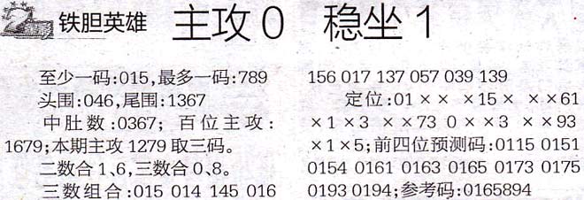 【铁胆英雄】第1017期预测信息<特区报>