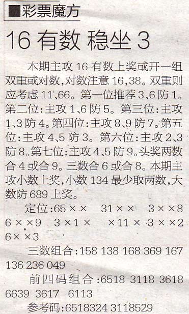 【彩票魔方】第1018期预测信息<特区报>