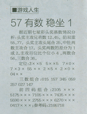 【游戏人生】第1036期预测信息<特区报>