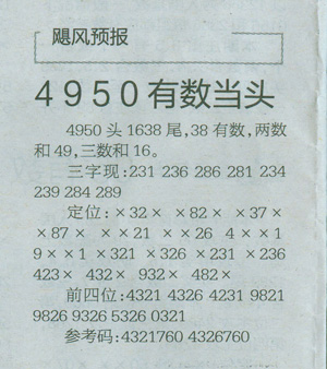 【飙风预报】第1047期预测信息<特区报>