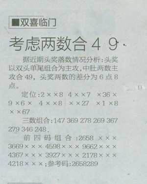 【双喜临门】第1048期预测信息<特区报>