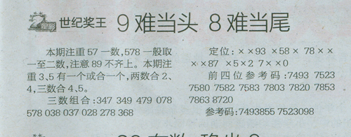 【世纪奖王】第1062预测信息<特区报>
