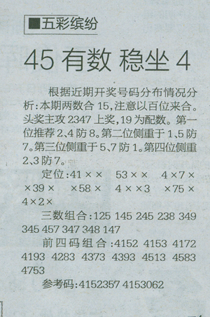 【五彩缤纷】第1062预测信息<特区报>