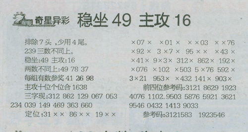 【奇星异彩】第1072预测信息<特区报>