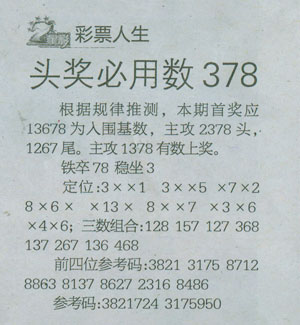 【彩票人生】第1075预测信息<特区报>
