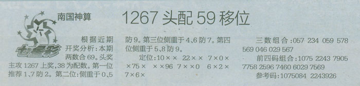 【南国神算】第1075预测信息<特区报>