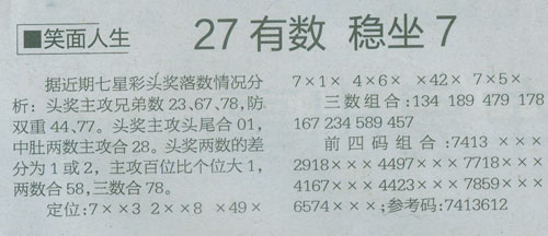 【笑面人生】第1077预测信息<特区报>