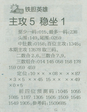 【铁胆英雄】第1080预测信息<特区报>