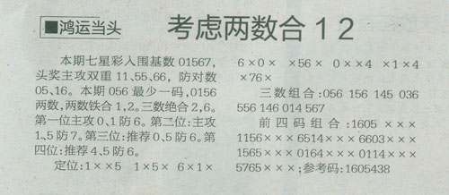 【鸿运当头】第1081预测信息<特区报>