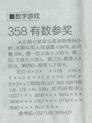 【数字游戏】第1087预测信息<特区报>