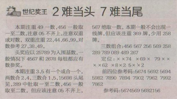 【世纪奖王】第1191预测信息<特区报>