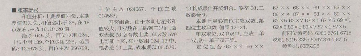 【概率玩彩】第1193预测信息<特区报>