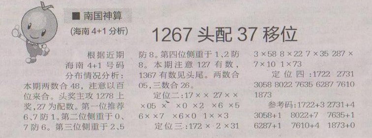 【南国神算】第1193预测信息<特区报>