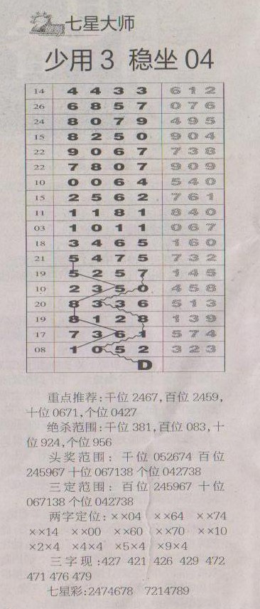 【七星大师】第1193预测信息<特区报>