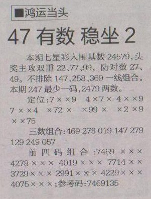 【鸿运当头】第1195预测信息<特区报>