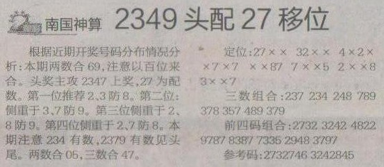 【南国神算】第1195预测信息<特区报>