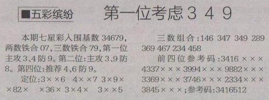 【五彩缤纷】第1196预测信息<特区报>