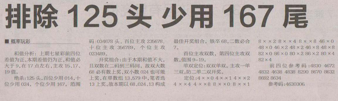 【概率玩彩】第1197预测信息<特区报>