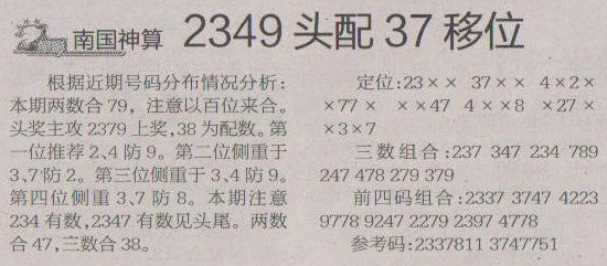 【南国神算】第1197预测信息<特区报>