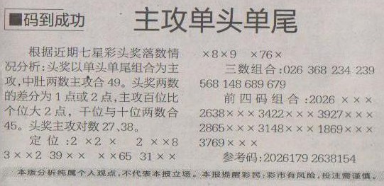 【马到成功】第1198预测信息<特区报>
