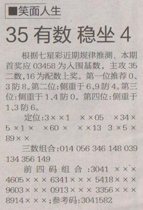 【笑面人生】第1201预测信息<特区报>