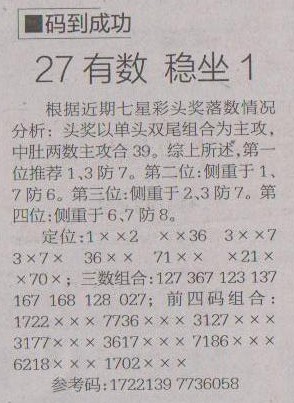 【码到成功】第1202预测信息<特区报>