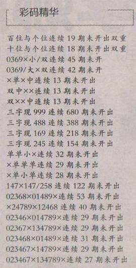 【彩码精华】第1203预测信息<特区报>