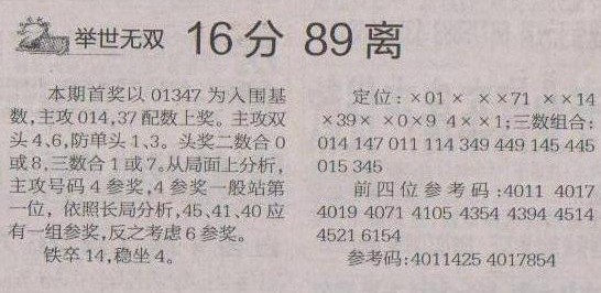 【举世无双】第1203预测信息<特区报>