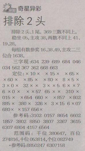 【奇星异彩】第1203预测信息<特区报>