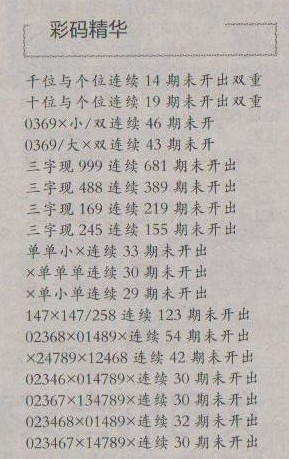 【彩码精华】第1204预测信息<特区报>