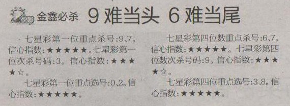 【金鑫必杀】第1204预测信息<特区报>