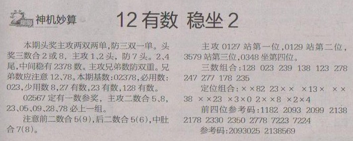 【神机妙算】第1204预测信息<特区报>